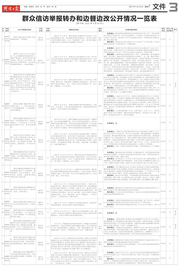 群众信访举报转办和边督边改公开情况一览表