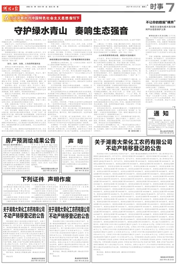 关于湖南大荣化工农药有限公司 不动产转移登记的公告