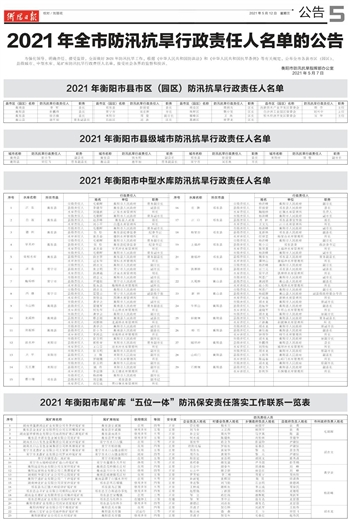2021年衡阳市县级城市防汛抗旱行政责任人名单