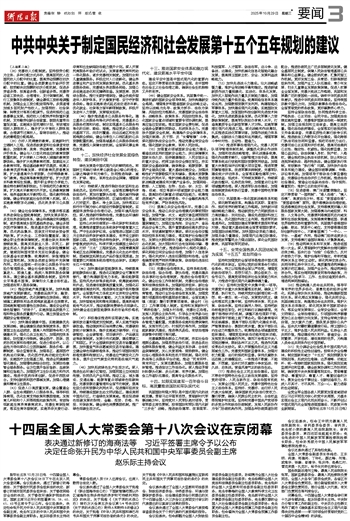 中共中央关于制定国民经济和社会发展第十五个五年规划的建议