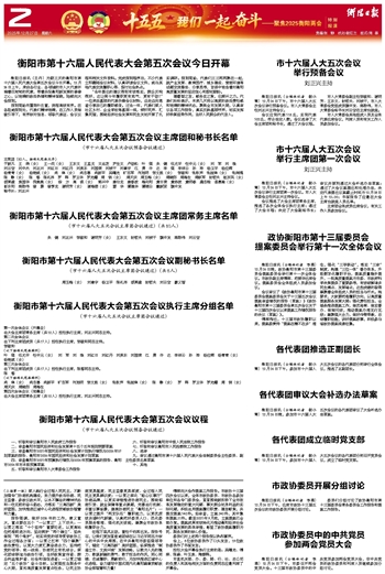 衡阳市第十六届人民代表大会第五次会议今日开幕