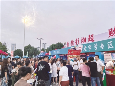 当晚“湘超”赛事期间,市商务局牵头组织25家衡阳本土企业,开展“看精彩湘超·购衡阳好物”展销活动,品类覆盖老字号、湖南好酒、外贸优品、文创产品等,各企业结合自身特色推出福利与优惠,现场热度持续攀升。