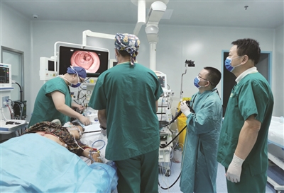 9月20日晨,消化内科曾斌主任团队紧急为患者进行胃镜检查,发现在十二指肠降部有大量新鲜血液及血凝块,但由于常规胃镜长度有限,无法抵达更深部位的肠道,出血源头成了一个致命的“谜团”。常规药物治疗已无法奏效,患者生命岌岌可危!
