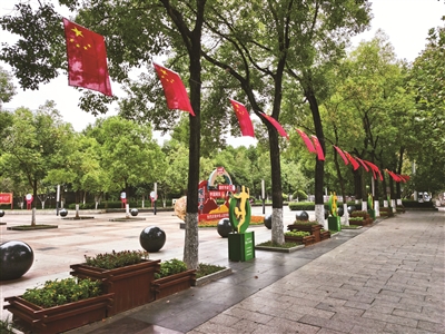 衡阳日报讯(文/图 全媒体记者 胡亚华)中秋国庆“双节”临近,连日来,我市各大公园、景区和广场装扮一新,鲜花竞相绽放,红旗飘扬,为市民游客营造浓浓的节日氛围。