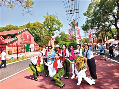 演出尾声,建湘大草坪变身集体舞会场。《年轻的朋友们今天来相会》旋律响起,演员们主动拉起游客的手围成圆圈,踩着复古舞步尽情摇摆。舞曲结束后,大家还依依不舍地拍照、合影留念。