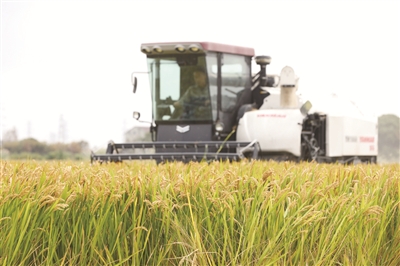10月22日,在浙江省嘉兴市南湖区凤桥镇星火村,农机手驾驶收割机收割水稻。霜降将至,各地农民抢抓农时,田间地头一派繁忙景象。 ■新华社发