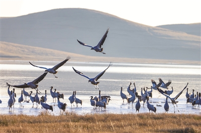 11月29日,黑颈鹤在大山包黑颈鹤国家级自然保护区内的大海子湿地栖息。云南省昭通市大山包黑颈鹤国家级自然保护区是中国黑颈鹤主要的越冬栖息地之一。据悉,目前已有千余只黑颈鹤飞抵大山包越冬。■新华社发