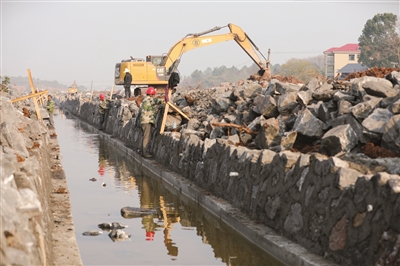 入冬后,衡阳县抢抓冬季枯水期的有利时机,加速推进农田灌溉水渠、河道综合治理和水库除险加固等水利基础设施建设力度,为来年防汛抗旱和农业生产奠定坚实基础。12月8日,该县演陂镇楠木村,工人在修建农田排灌渠道。 ■通讯员 刘欣荣 曹旭升 摄