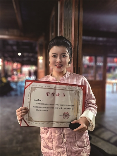 衡阳日报讯 (全媒体记者 敖文景 通讯员 王雁飞) 12月14日,从怀化市荆坪古村传来喜讯,在2025年“乡村网红走基层”总结交流活动暨“文旅乡村好韵味・网红带你逛潇湘”湖南省第四届乡村文旅网红大赛中,由衡阳市文化馆选拔推荐的网红达人张译心凭借扎实的专业素养与鲜明的创作特色,成功斩获“优秀乡村文旅网红”称号。