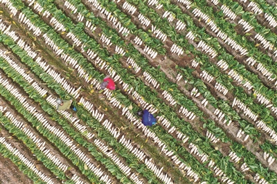 12月18日,衡阳县关市镇鑫粤农业生态蔬菜种植基地的白萝卜进入采收季,破土而出的鲜嫩白萝卜,整齐地被放在田垄两侧,农户们忙着给萝卜削叶、装车、清洗和外运,供应市场。■通讯员 刘欣荣 摄