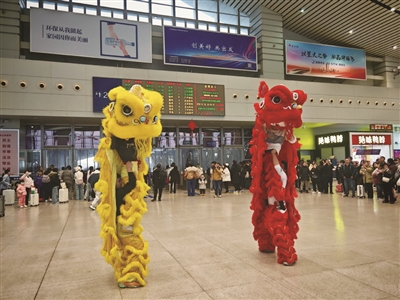 衡阳日报讯 (文/图 全媒体记者 金明达 通讯员 谭贤)1月1日,高铁衡阳东站候车室内张灯结彩、热闹非凡,一场以“锦绣新年,温暖启程”为主题的文化活动在此精彩上演,为往来旅客送上别具一格的新年祝福。