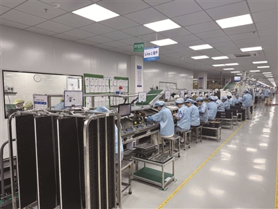 走进恒温恒湿的万级无尘车间,机械臂与工人协同作业,全自动贴片机以每分钟超250次的速度精准贴装。通过“立体化智能布局”,四层厂房实现物料空中流转,人均产出较传统模式提升2.5倍。生产总监邢军介绍:“生产线三班倒赶工,仍难以满足激增的订单需求。”