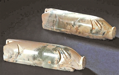 在众多的玉葬器里,玉琀的历史最为悠久,早在大汶口文化墓葬里,就发现了有死者口里含有鳞形玉器的例子。另外,早期的时候还常以残玉用作口琀,往往还是多个碎块。后来成为玉琀典型形象的玉蝉在商代晚期正式出现,周代开始逐渐增多,一直到了西汉中期以后才开始流行。