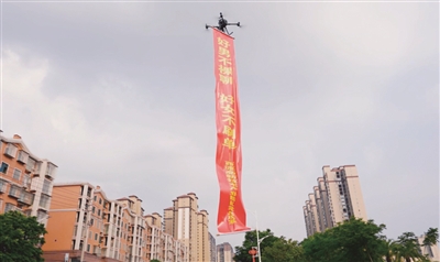 在园区核心人流密集区,他们还运用无人机进行空中喊话和悬挂反诈标语,实现宣传“抬头可见、低头可思”。“电信诈骗手法迭代更新,我们反诈宣传也必须与时俱进,”蒋玉娟说,“看到员工把不接陌生电话挂在嘴边,企业主动开展反诈培训,我们知道路走对了。”