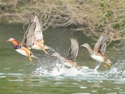 2月4日是二十四节气中的立春。 当日,一群鸳鸯在洣水衡东杨林段的江面上或游弋嬉闹、或振翅欲飞,为即将到来的春天描绘出一幅灵动的画卷。 ■通讯员 嘻砣 衡阳日报全媒体记者 彭斌 摄