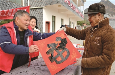 “手写的春联才有记忆里的年味,这比买来的印刷品有意义多了!”一位年近90岁高龄的村民拿着刚写好的春联,脸上洋溢着幸福的笑容。