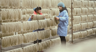 山脚石手工红薯粉色泽黄亮,粗细均匀,韧性好,味道纯正、爽口滑溜、营养丰富,真正的纯绿色传统食品,赢得了“人造鱼翅”的美称。