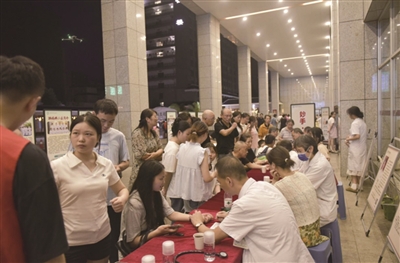“夜市”破圈引潮流,让中医药可感可及。“中医夜市”作为医院创新文化传播形式的生动实践,成为深受群众喜爱的特色文化品牌活动。从5月底弘阳广场“蒸蒸日上,健康‘湘’伴”主题夜市,到8月七夕“岐黄夜宴”国潮养生市集,医院将名医问诊、古法理疗、药膳品尝、本草辨识、文创体验等元素,巧妙融入繁华的夜间经济场景。活动现场,超六成参与者为年轻人,他们排队体验耳穴压豆“耳钉版”、定制“手机颈拯救计划”、猜本草灯谜、品养生茶饮,告别“奶茶续命”,拥抱“中医养生”。这场“药香”与“烟火气”的奇妙邂逅,让中医药文化变得可观、可感、可及、有趣,绘就了雁城夏夜最独特的健康画卷,真正实现了传统文化的“破圈”传播。